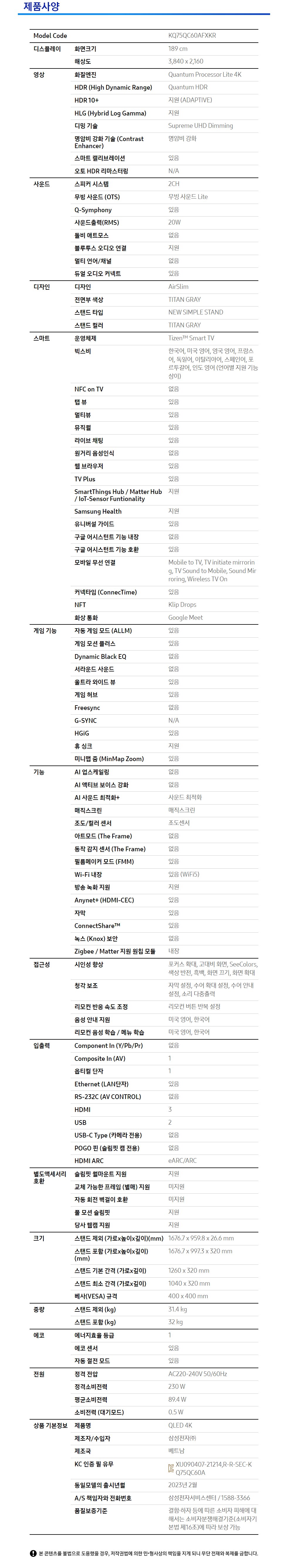 삼성 QLED TV KQ75QC60AFXKR 189cm (75) Samsung QLED TV KQ75QC60AFXKR 189cm (75)