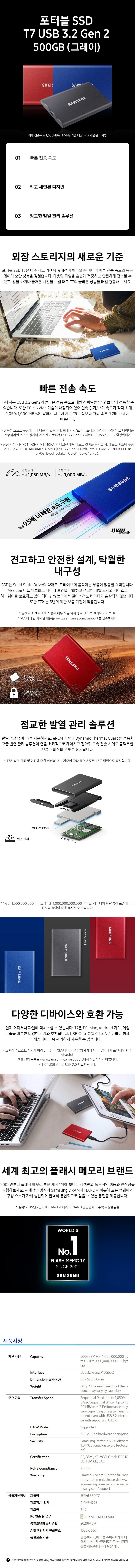 삼성 포터블 외장 SSD T7 500GB 삼성 포터블 외장 SSD T7 500GB