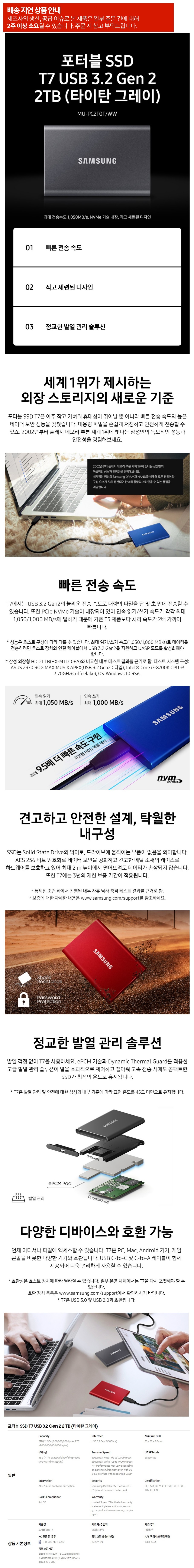 삼성 포터블 외장SSD T7 2TB - 타이탄그레이