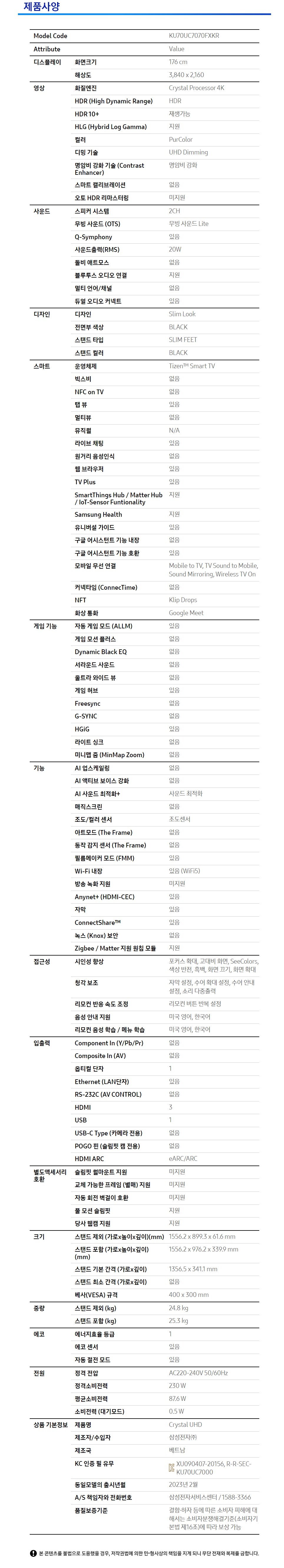 삼성 UHD 70 TV KU70UC7070FXKR 176cm (70) Samsung UHD 70 TV KU70UC7070FXKR 176cm (70)
