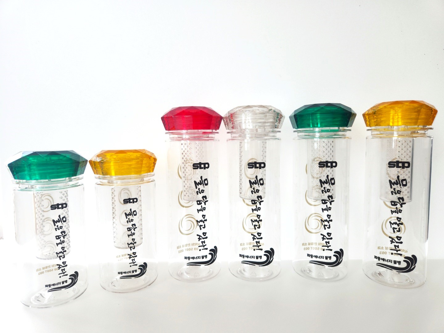 방출하는 장석, 게르마늄, 맥반석, 고령토, 토르마린, 운모석 등 잘 배합된 1,250 메쉬의 분말을 스크린잉크에 혼합하여 병에 인쇄하여 육성 파동에너지, 음이온, 근적외선, 원적외선의 방출을 극대화하여 물을 파동수로 바뀌게 한다.