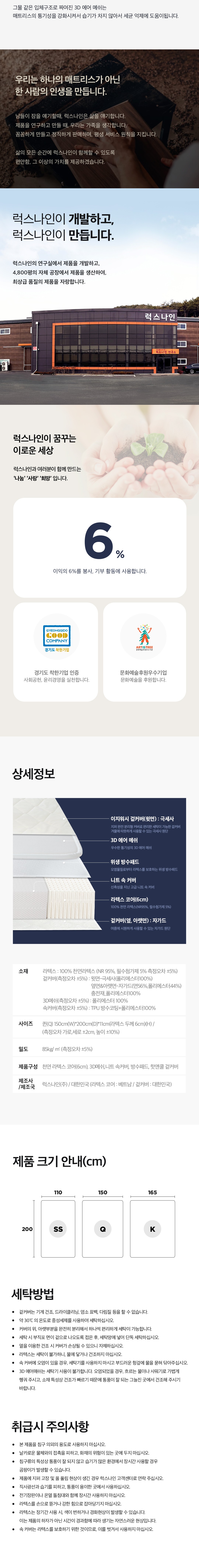 럭스나인 천연 라텍스 매트리스(11.0cm)-퀸