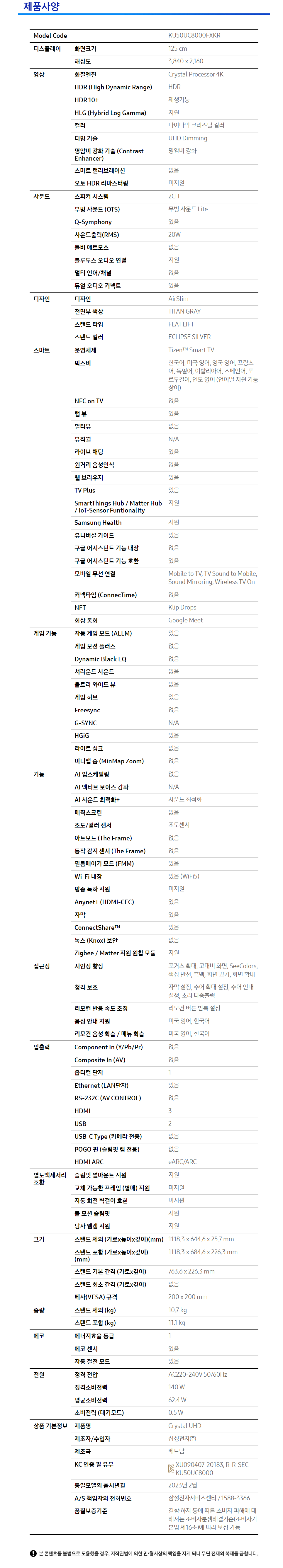 삼성 UHD 50 TV KU50UC8000FXKR 125cm (50) Samsung UHD 50 TV KU50UC8000FXKR 125cm (50)