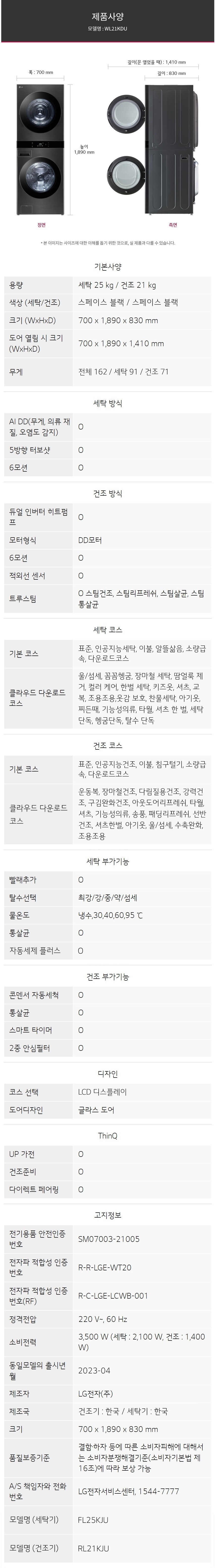 엘지 오브제 워시타워 세탁 25kg&건조 21kg - 블랙