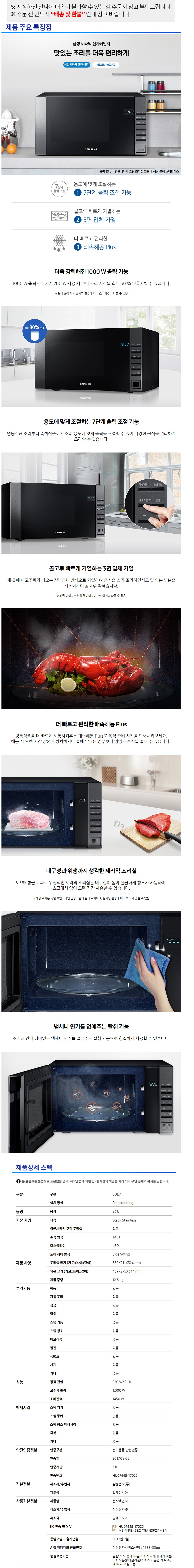 삼성 세라믹전자레인지 23L