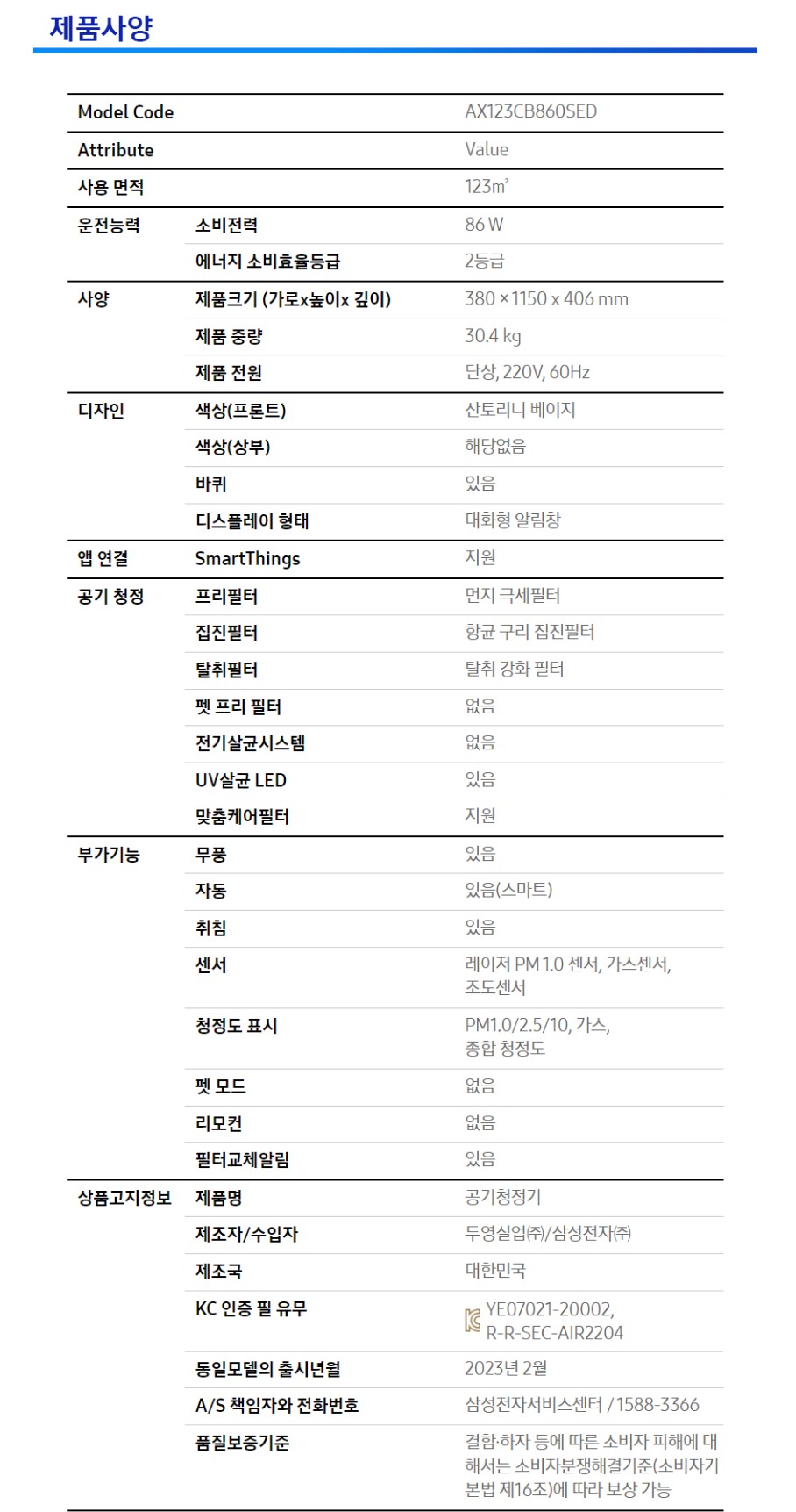 삼성 비스포크 큐브 Air 공기청정기 (70+53㎡)