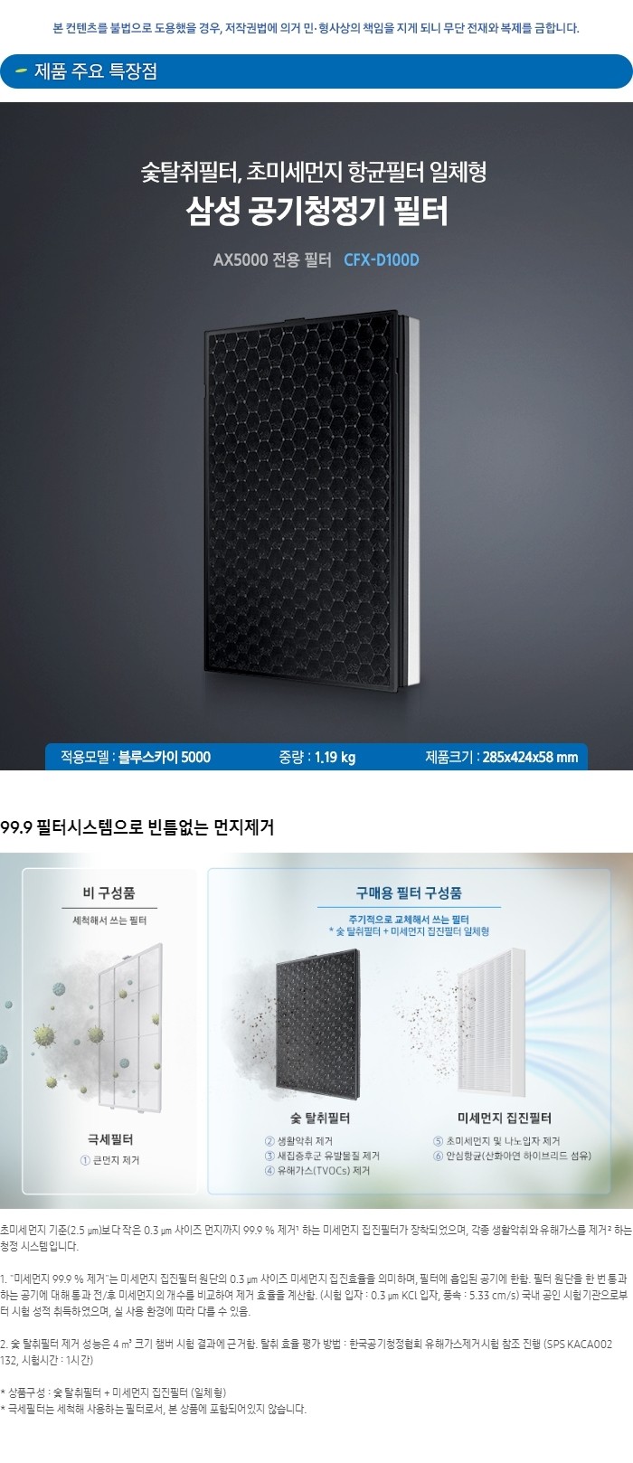 삼성 공기청정기 블루스카이 5000 필터 CFX-D100D