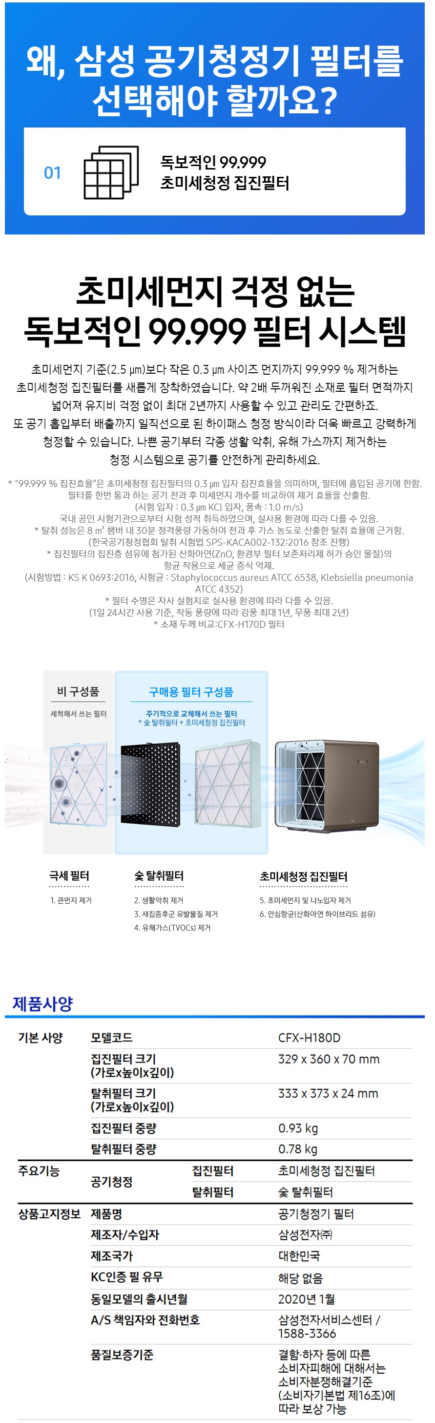 삼성 공기청정기 큐브 필터 CFX-H180D