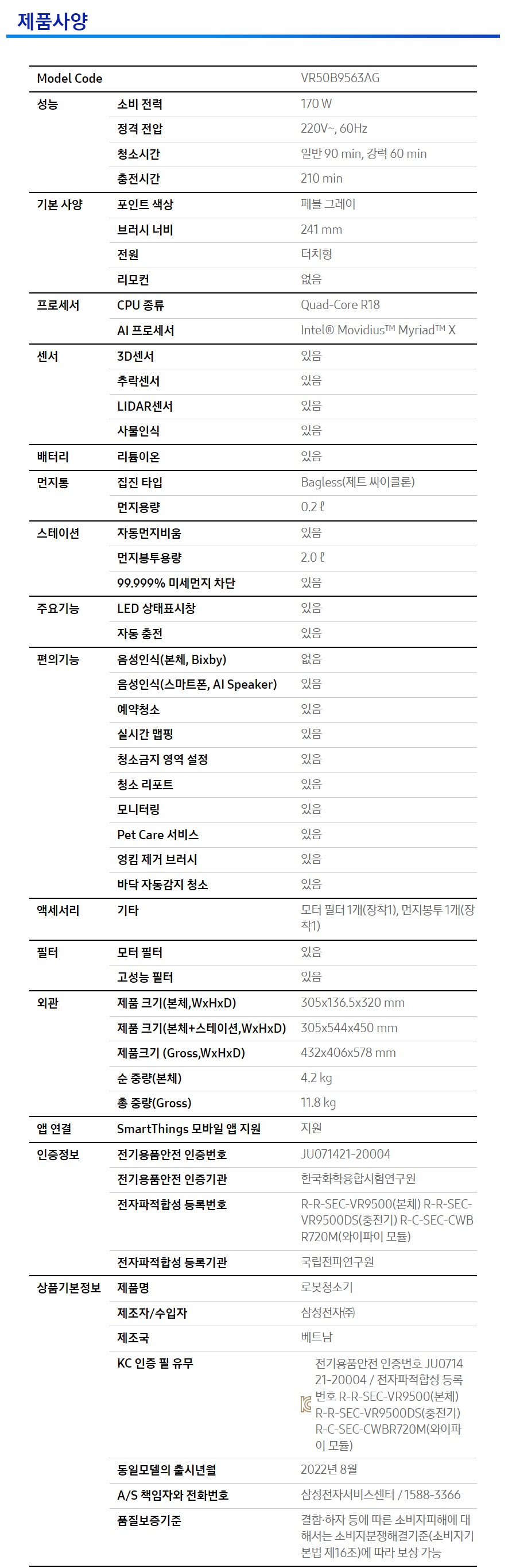 삼성 비스포크 제트 봇 로봇청소기 AI SE