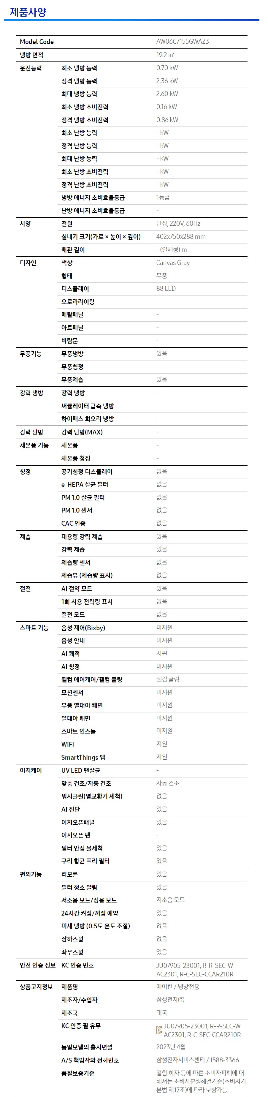 삼성 무풍창문형에어컨매립형(19.2㎡)+연장키트 105cm