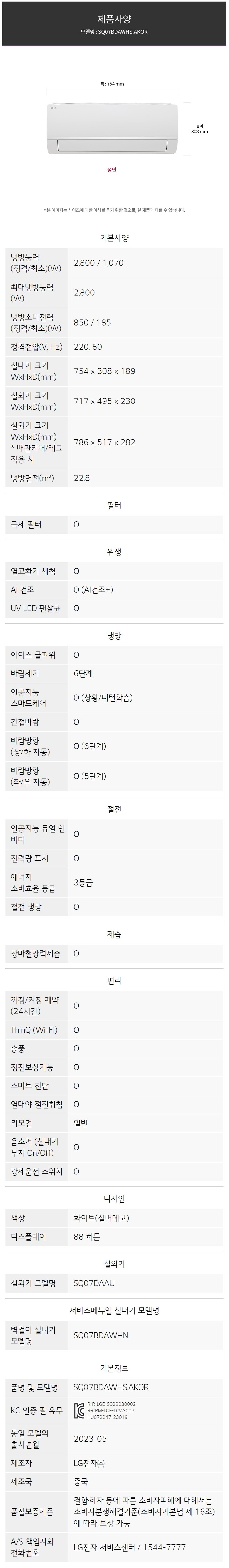 엘지 벽걸이형 에어컨 (22.8㎡)