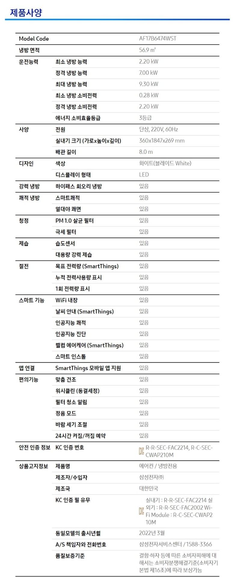 삼성 Q9000 스탠드형 에어컨 (56.9㎡) -화이트