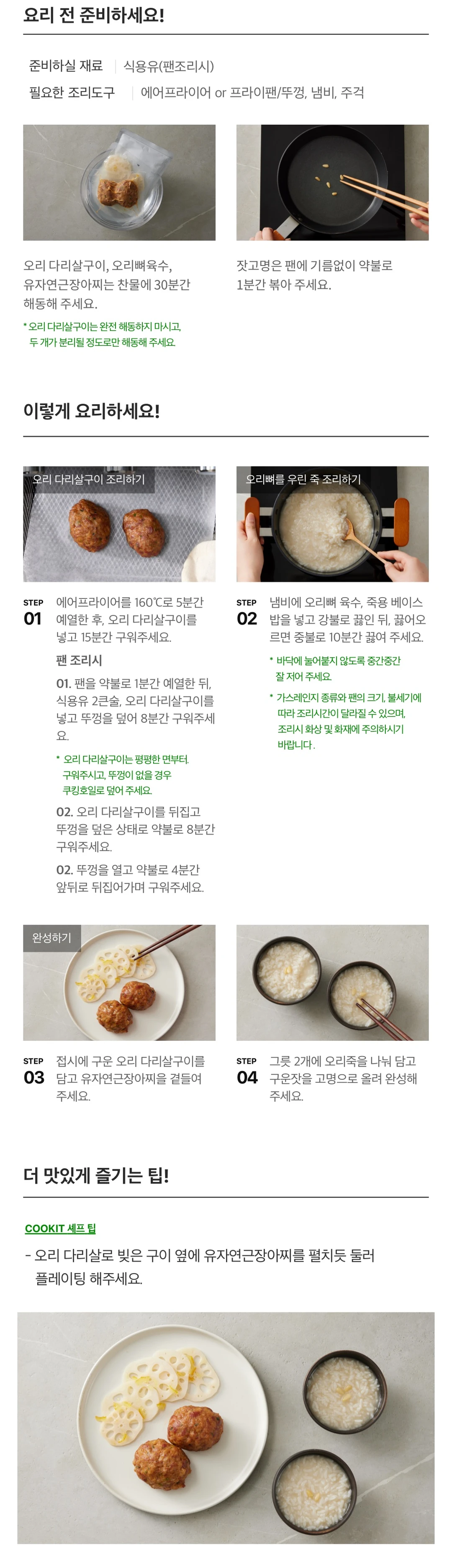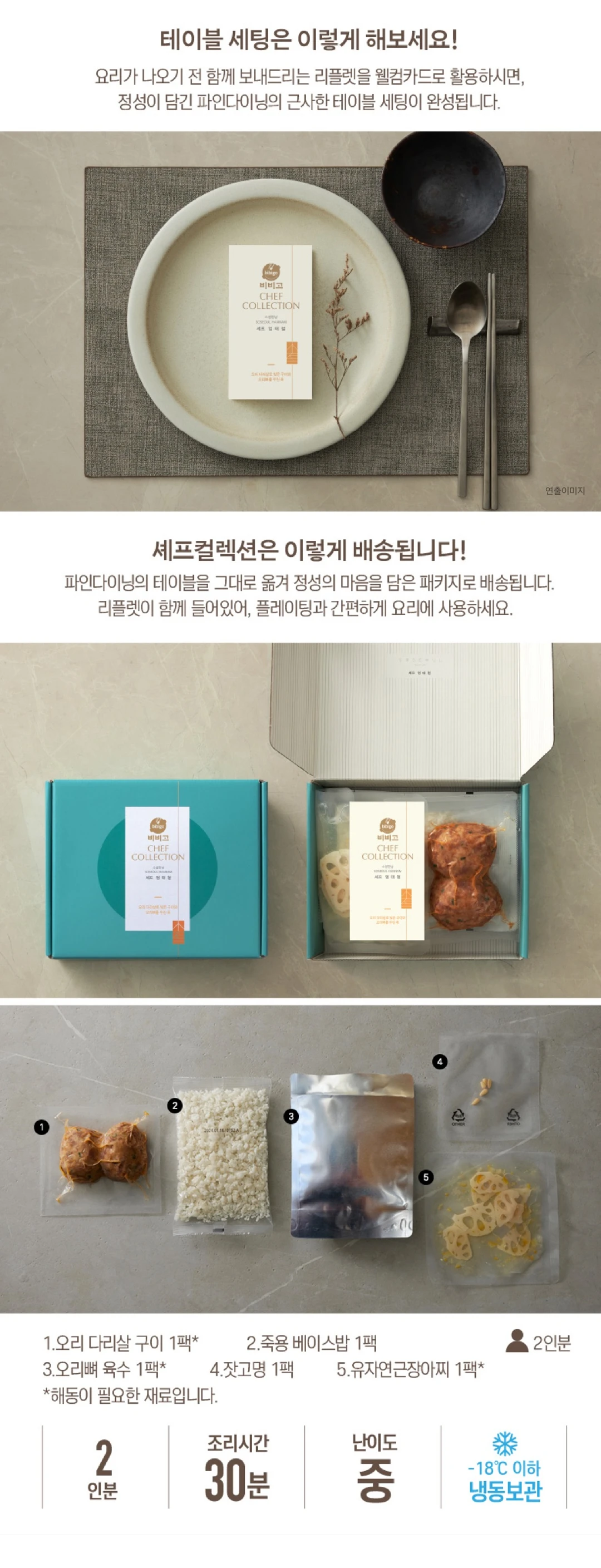 CJ [비비고 셰프컬렉션x소설한남] 오리 다리살 구이와 오리뼈를 우린 죽_밀키트