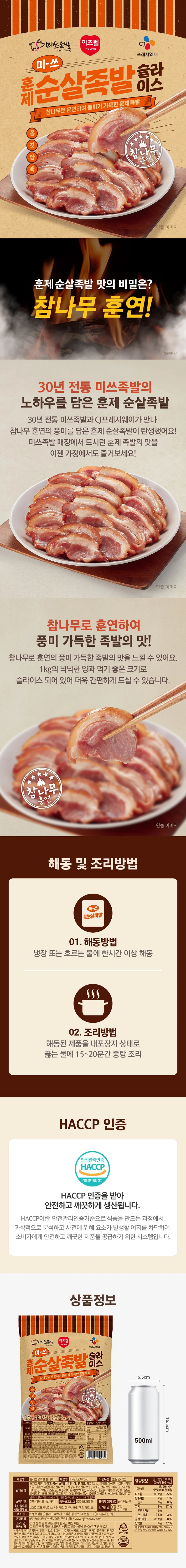 CJ 미쓰족발X이츠웰 훈제족발 슬라이스 1Kg