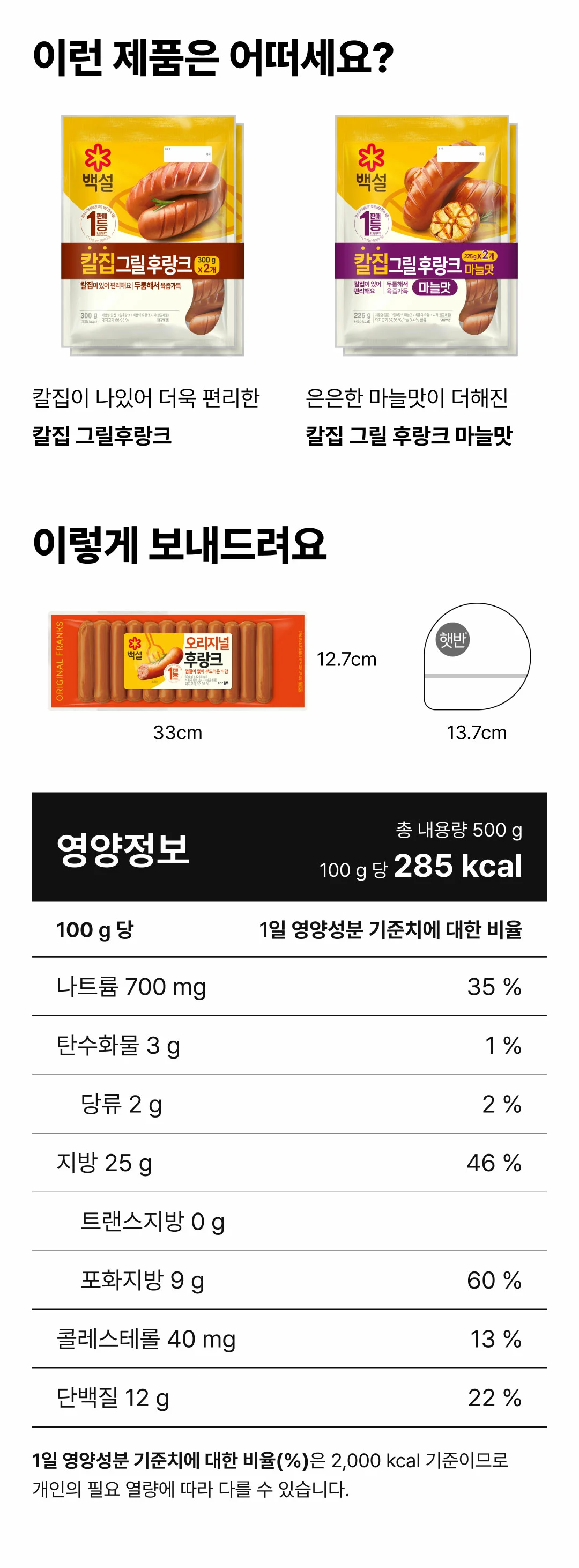 CJ 백설 오리지널후랑크 500g
