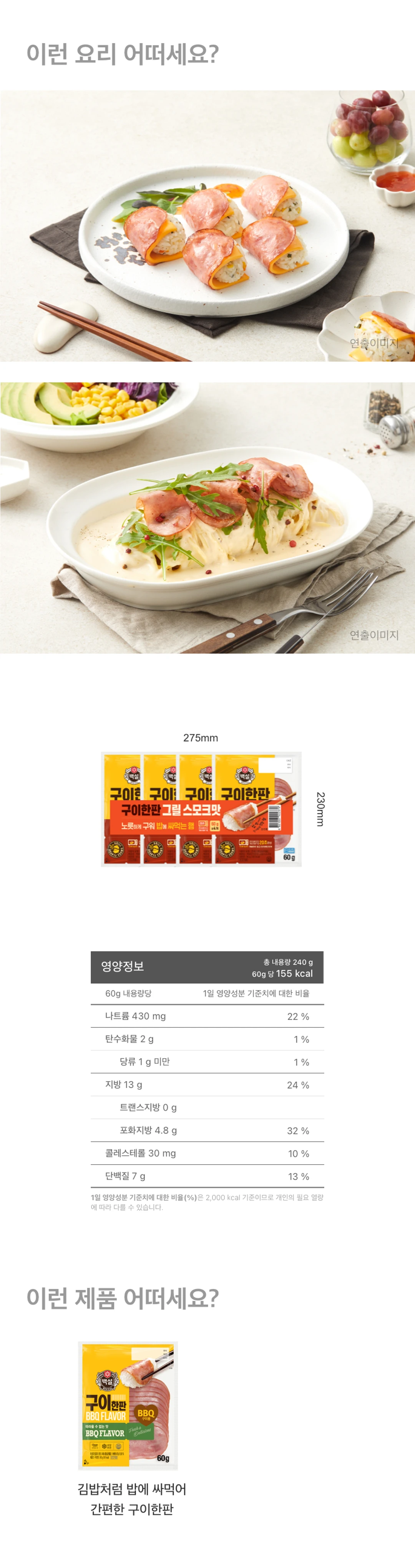 CJ 백설 구이한판 그릴스모크 60gX4