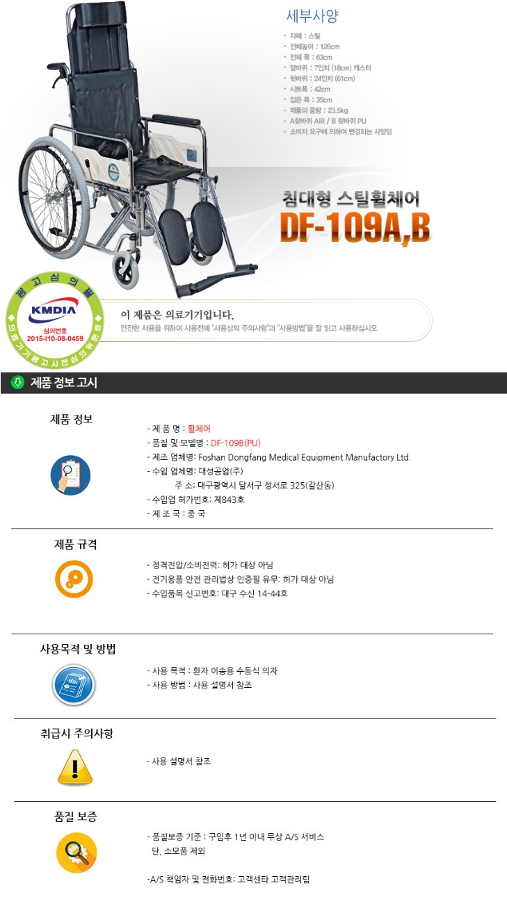 대성 DF-109B(PU) 침대형 스틸 휠체어