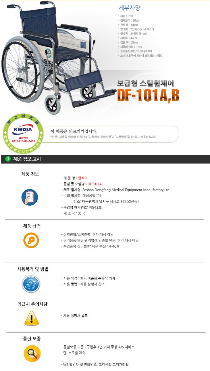 대성 DF-101A 스틸 전통 기본형 휠체어