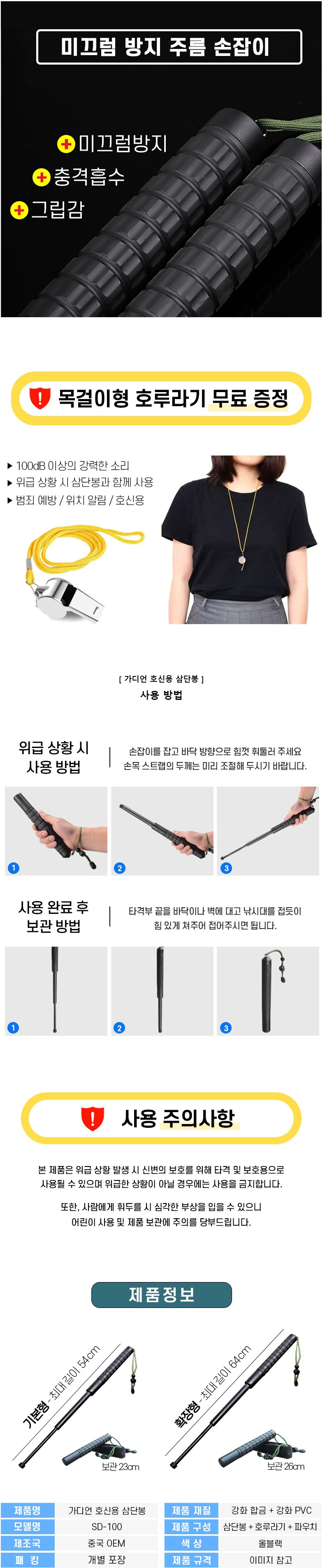 깔끔더하기 가디언 3단 호신봉 호신용 삼단봉 호신용품