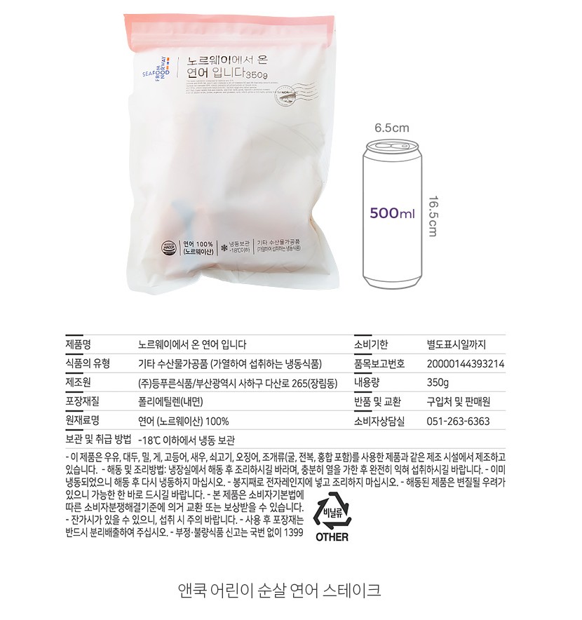 KY 앤쿡 어린이 순살 연어 스테이크 350g (냉동)