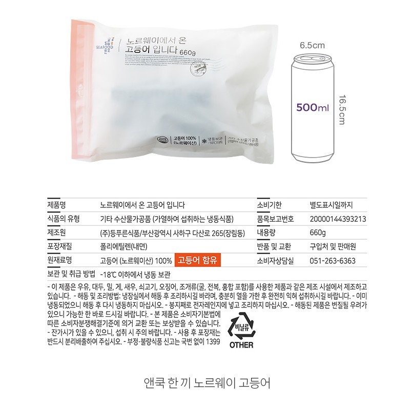 KY 앤쿡 한끼 노르웨이 고등어 660g (6쪽) (냉동)