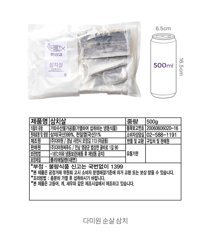 KY 다미원 순살 삼치 500g (냉동)