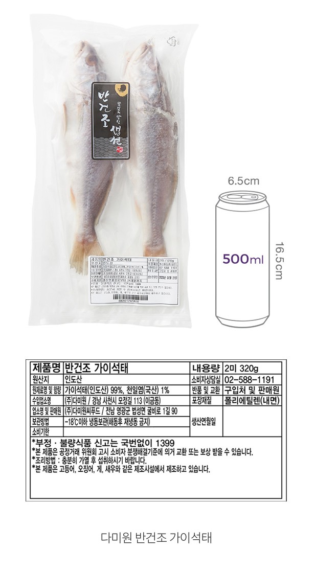 KY 다미원 반건조 가이석태 320g (2마리) (냉동)
