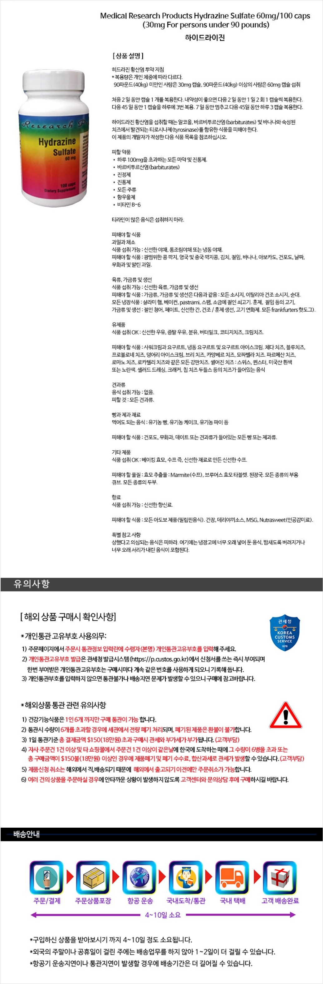 하이드라진 황산염 Hydrazine Sulfate 60mg/100 caps
