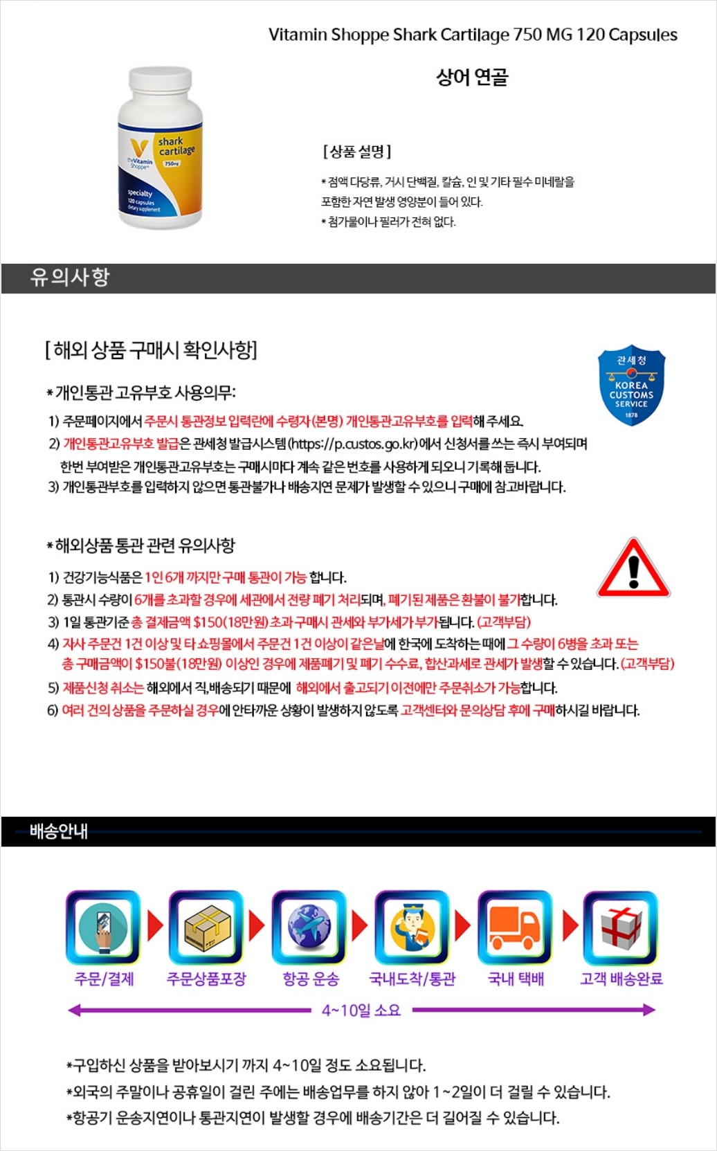 상어연골 Shark Cartilage 750 MG 120 Capsules