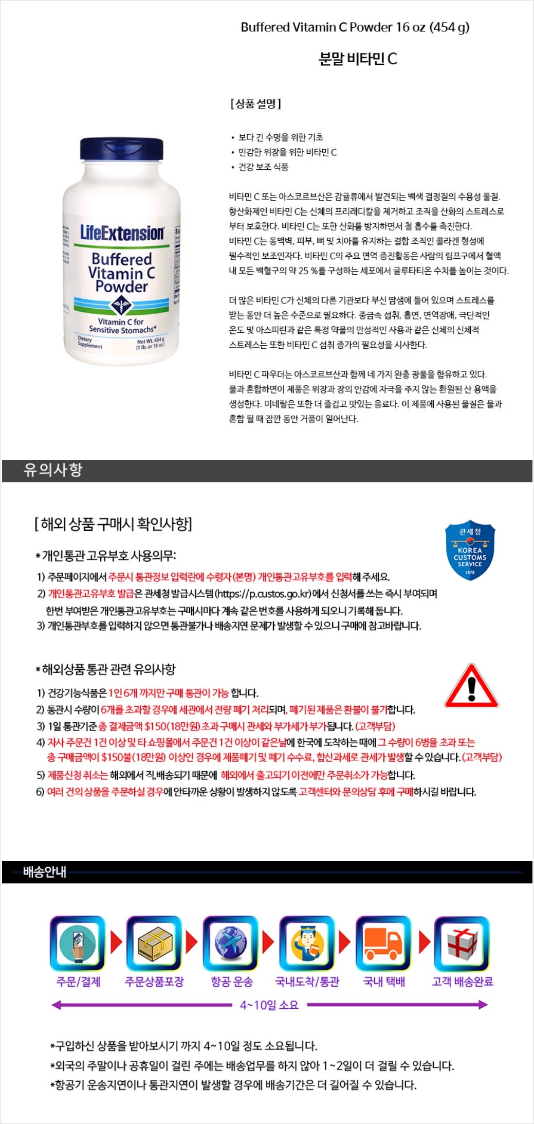 분말 비타민 C Buffered Vitamin C Powder 16 oz. 454g