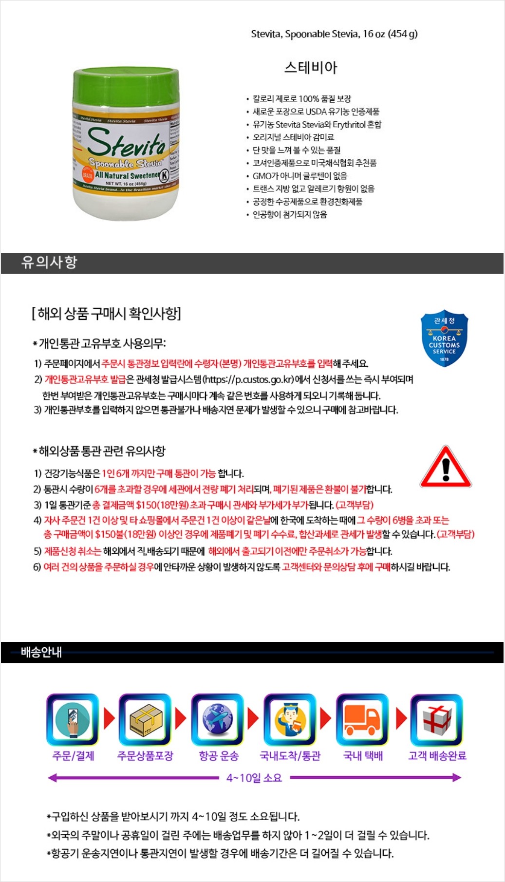 스테비아 Stevita Spoonable Stevia 16 oz 454g