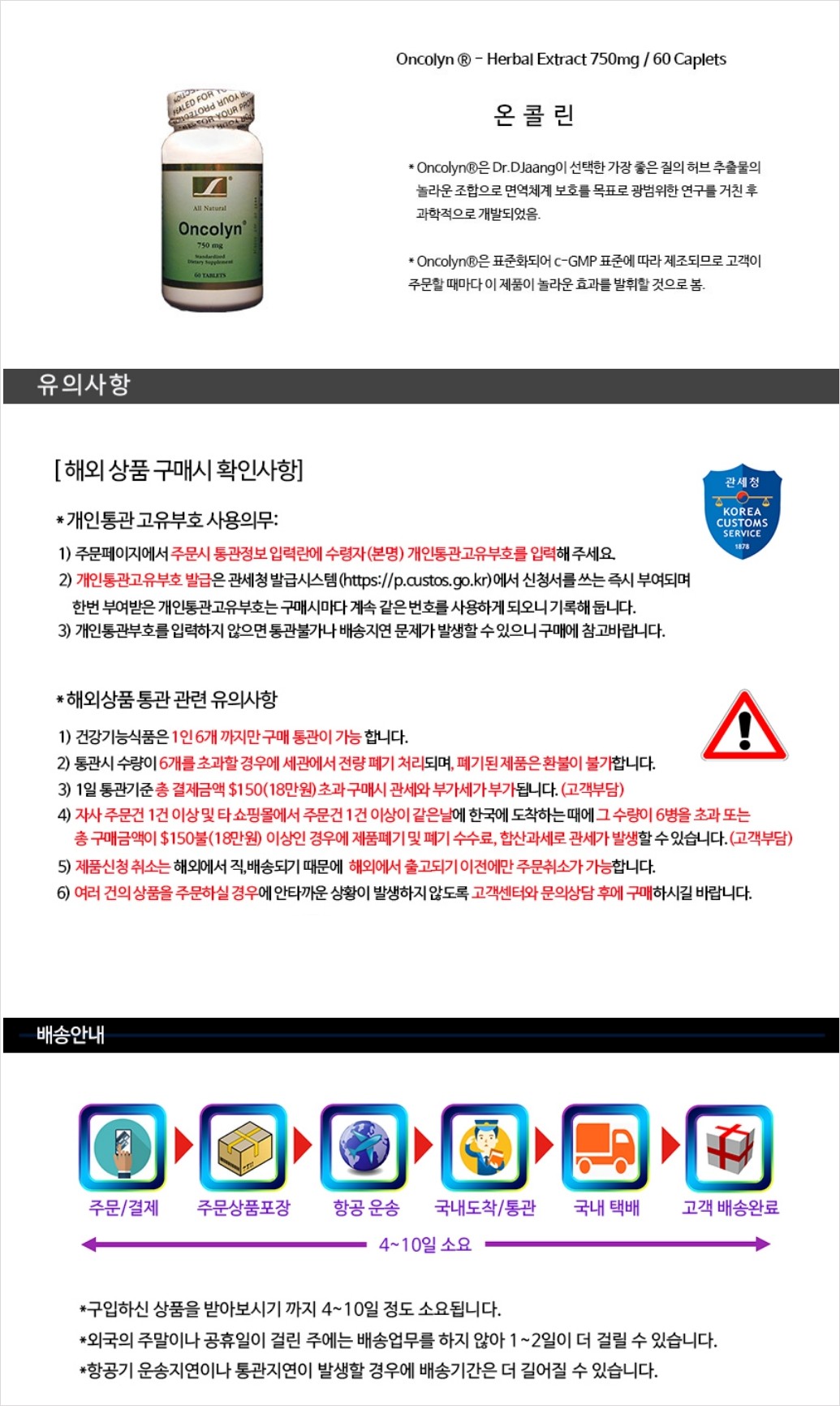 온콜린 Oncolyn Herbal Extract 750mg 60 Caplets