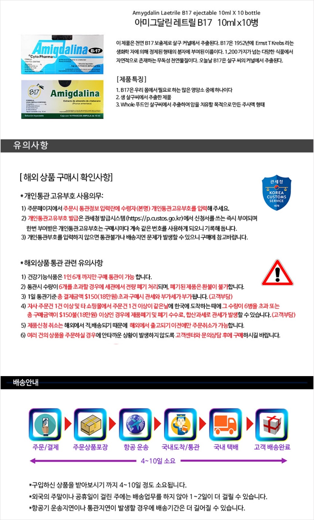 아미그달린 레트릴 B17 solution 10ml x 10병