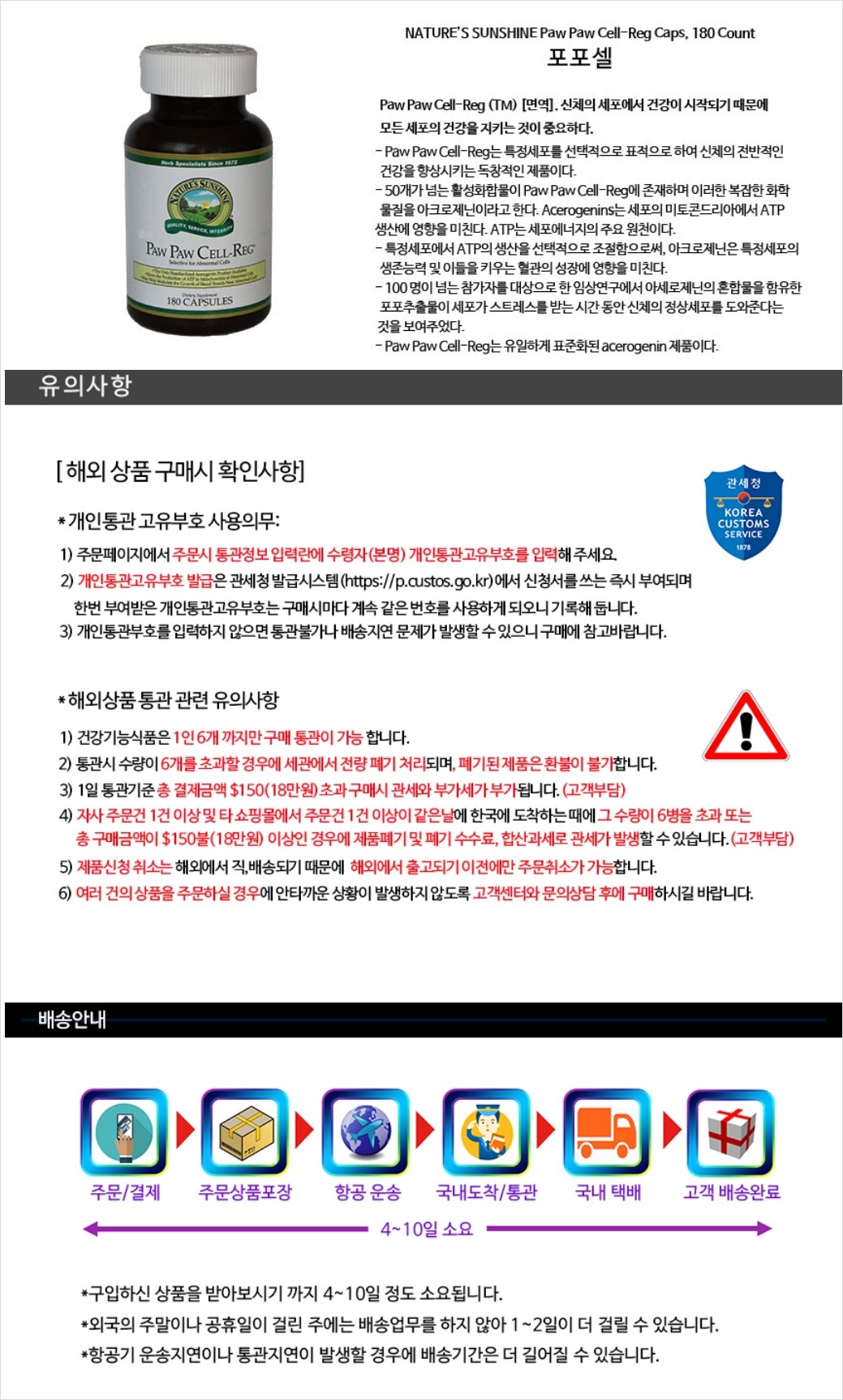 NATURE'S SUNSHINE Paw Paw 180 Count