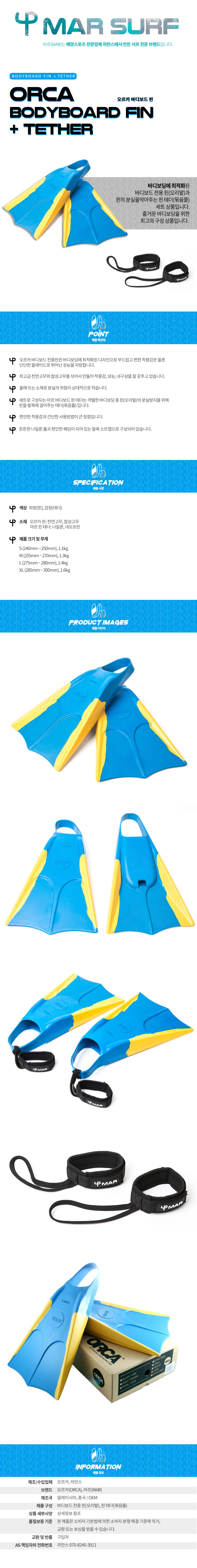 오르카 바디보드 핀 & 테더1쌍