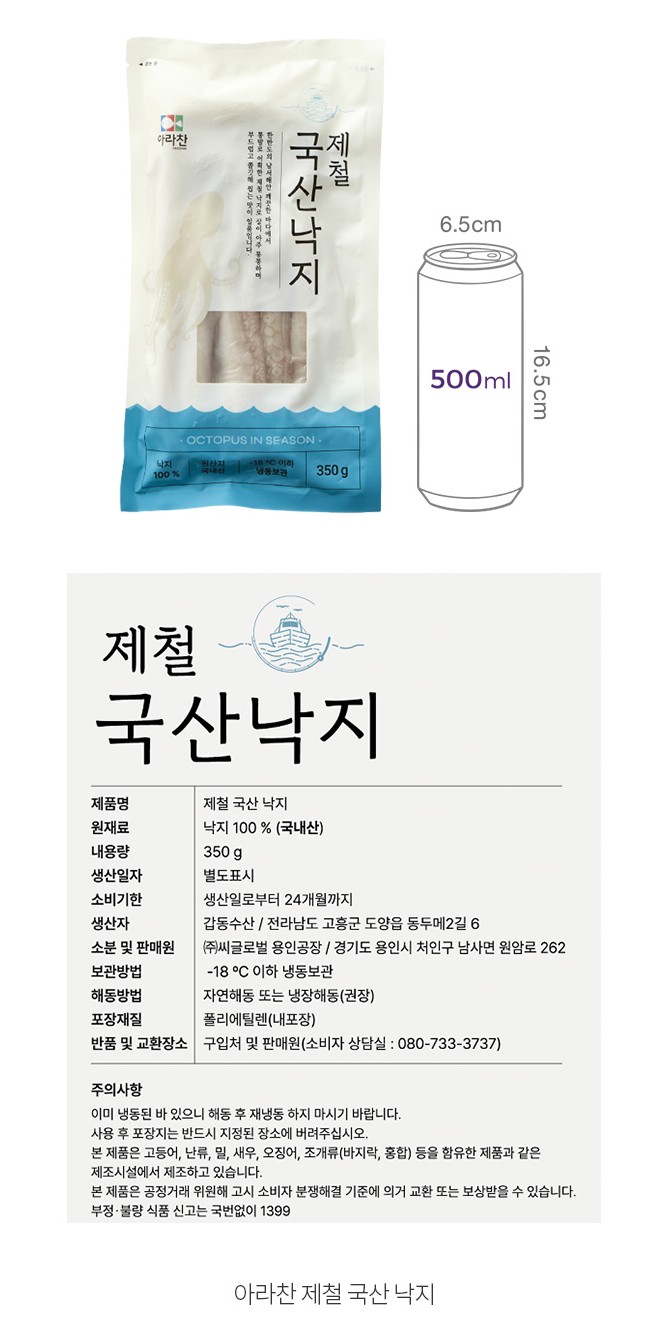 KY 아라찬 국산 제철 낙지 350g (냉동)