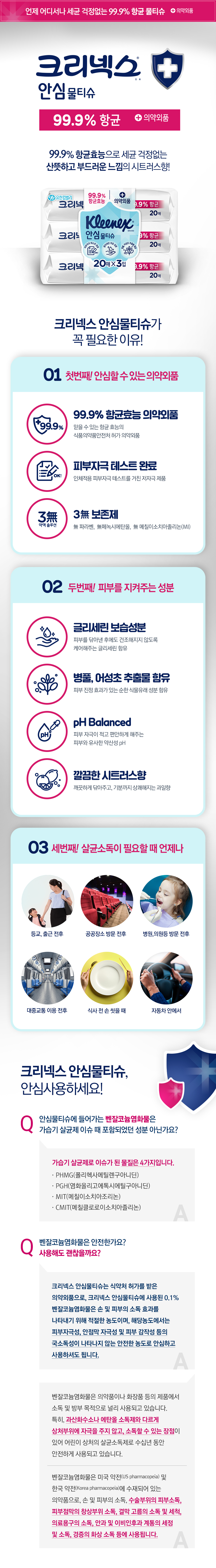 크리넥스 안심 물티슈 휴대용 20매 x 3 x 8팩
