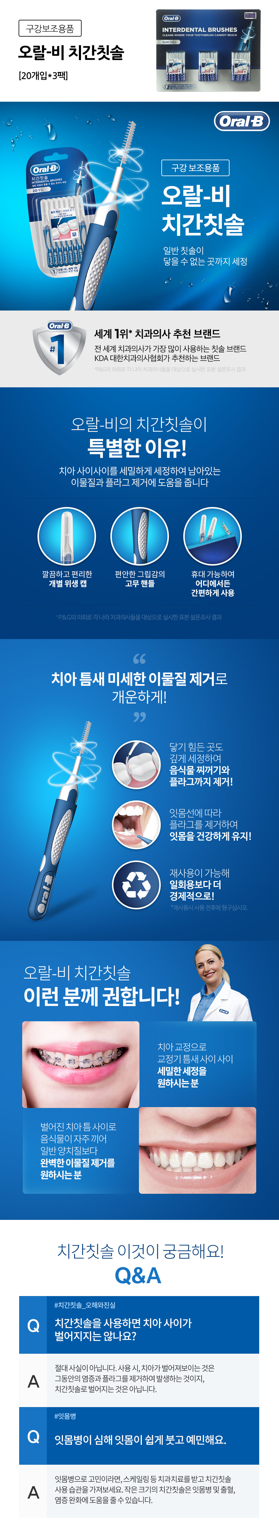 오랄비 치간 칫솔 20개 x 3팩