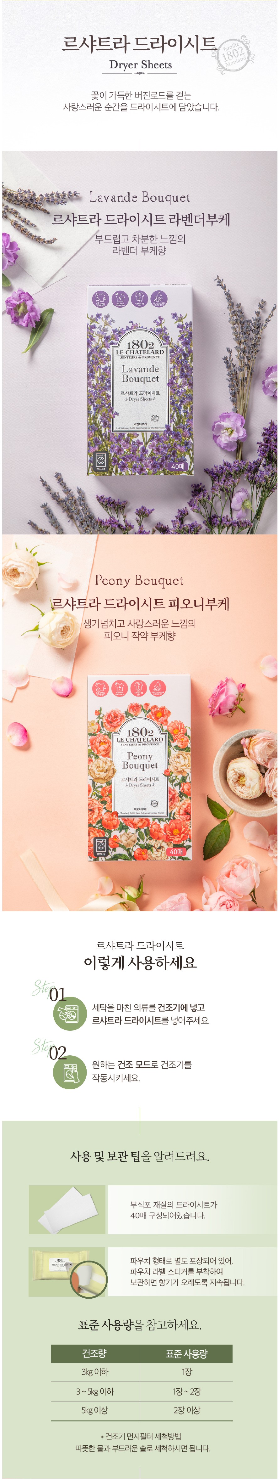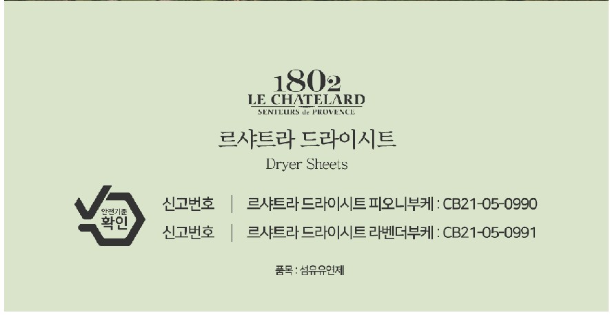 프랑스 프로방스의 향기를 담은 건조기용 드라이시트, 르샤트라1802